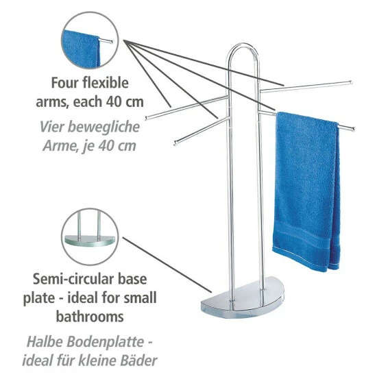 Der Handtuch- und Kleiderhalter aus der Serie Raumwunder hält an vier beweglichen Armen (40 cm Länge) Handtücher und leichte Kleidungsstücke stets griffbereit.