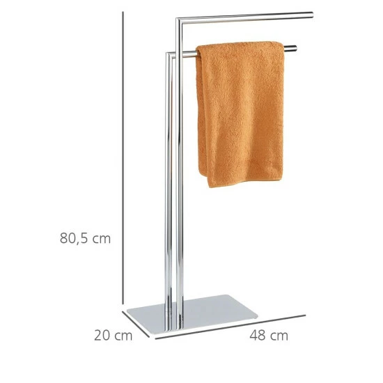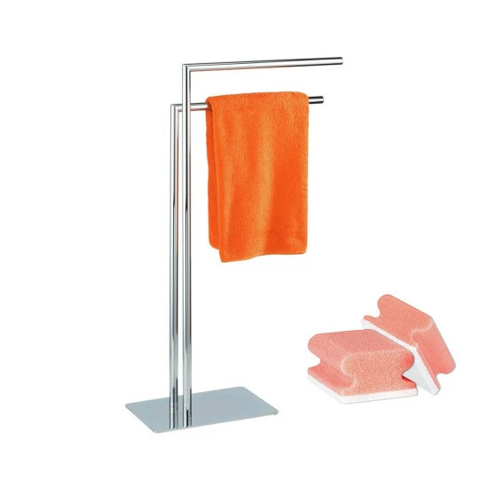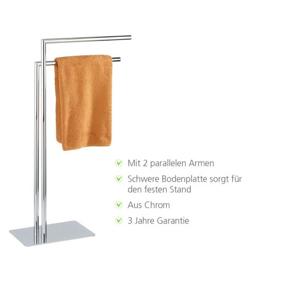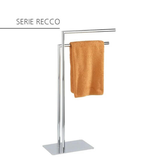 Der Handtuchständer Recco von WENKO überzeugt durch die Kombination aus futuristischem Design und Funktionalität, was ihn zum unverzichtbaren Zubehör für Bade-und Schlafzimmer macht. Egal ob als Handtuchständer fürs Badezimmer oder als Kleiderständer für Schlafzimmer, der praktische Helfer macht jederzeit eine gute Figur. Der freistehende Handtuchständer ist durch seine schwere Bodenplatte absolut stabil und steht allzeit sicher. Die Aufhängestangen sorgen für jede Menge Platz egal ob Handtücher, Badematten oder Kleidungsstücke.