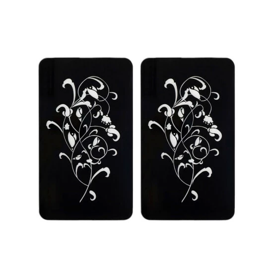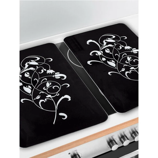 Das 2er Glas-Abdeckplatten-Set Ornamento Nero bringt mit seinem kunstvollen, weißen Ornament-Motiv auf schwarzem Grund klassische Eleganz in die Küche und sorgt für zusätzliche Funktionalität des Herdes.
