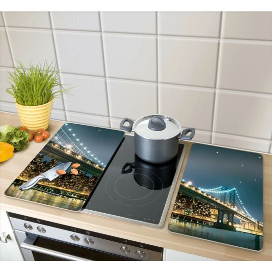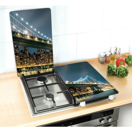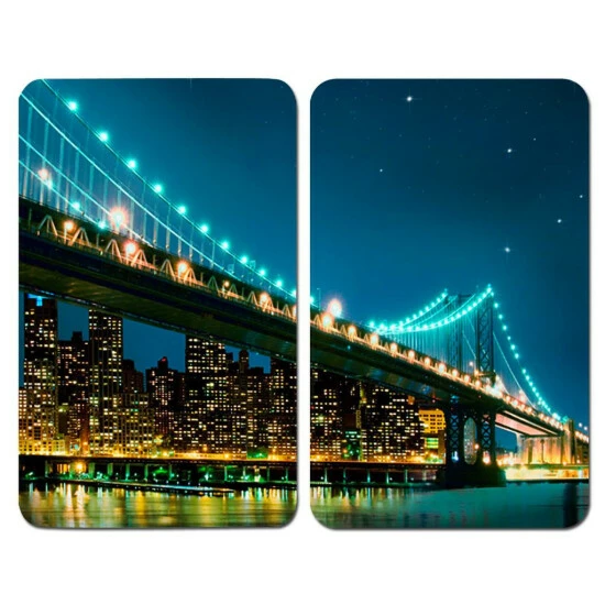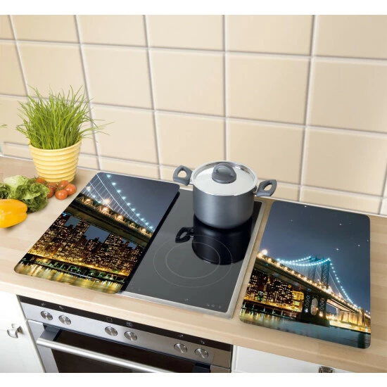 Die New Yorker Brooklyn Bridge auf dem Glas-Abdeckplatten-Set bringt amerikanisches Flair in die Küche. Die praktischen Glas-Abdeckplatten sorgen zudem für zusätzliche Funktionalität des Herdes.
