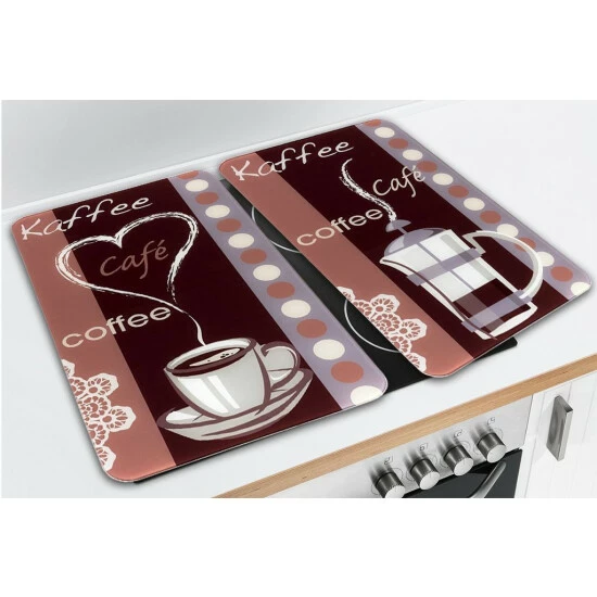 COFFEE FLAVOUR Glasschutzplatten, 2 Stück der deutschen Marke WENKO wurdenaus hitzebeständigem Glas hergestellt. Sie sind zum Abdecken von Platten aus Elektro-, Keramik- und Gasherden bestimmt. Sie schützen vor Schmutz, Beschädigungen und Staubsenkungen.
