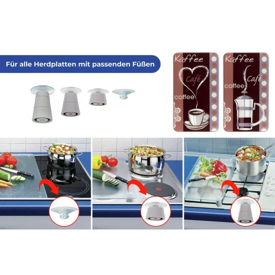 Dieses zweier Glas-Abdeckplatten-Set bringt Kaffeehaus-Atmosphäre in die Küche und sorgt für zusätzliche Funktionalität des Herdes.