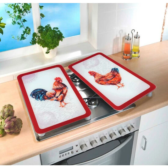 2er Set Herdabdeckplatte Glasabdeckplatte Glasschutzplatte Schneideplatte