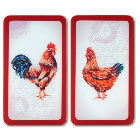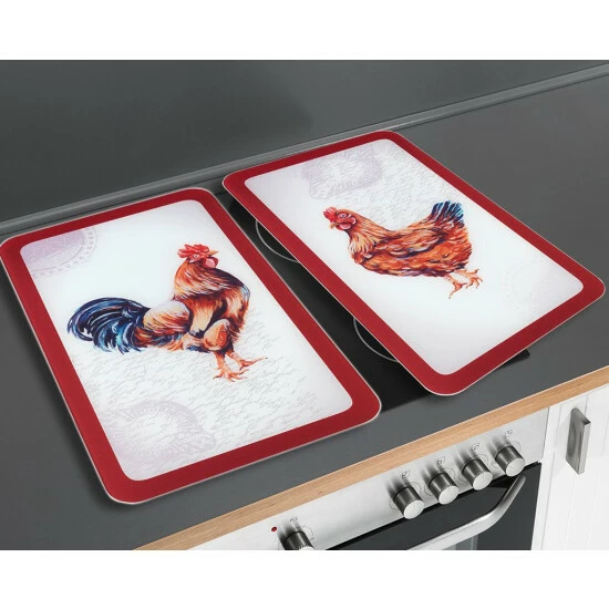 Hahn und Henne auf der Herdabdeckplatte Farm bringen Landhaus-Stil in die Küche.