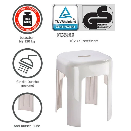 - Moderner Badhocker: Aus hochwertigem, schwerem Kunststoff gefertigt, überzeugt der Hocker mit seiner hohen Belastbarkeit bis 120 kg und einem klassischen Weiß, das in jede Einrichtung passt