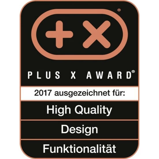 - Ausgezeichnet für High Quality, Design und Funktionalität von der Jury des Plus X Awards 2017