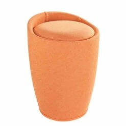 Ausgefallener Badhocker, auch als Wohnhocker geeignet Aus stabilem ABS-Kunststoff mit hochwertigem Stoffbezug in orangefarbener Leinen-Optik Bequeme, gepolsterte Sitzfläche, Maße (B/T x H):˜ 36 x 50,5 cm Idealer Wäschesammler mit herausnehmbarem Wäschesack, Inhalt 20 Liter Material: Hocker: Kunststoff – ABS, Außenmaterial und Wäschesack: 100 % Polyester