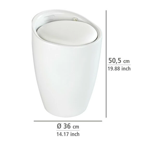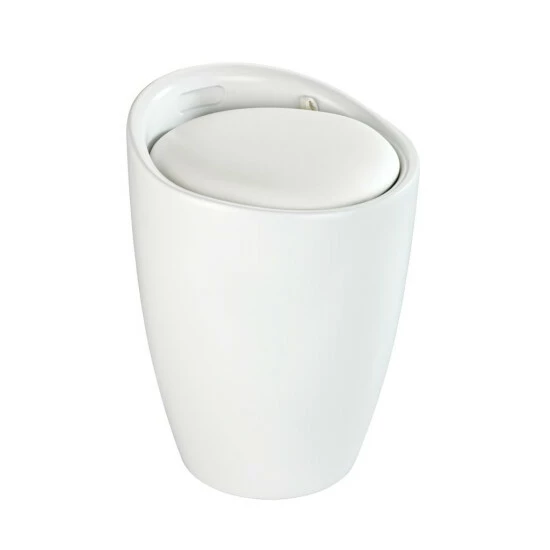 Der trendige Badhocker und Wäschesammler Candy ist aus stabilem ABS-Kunststoff gefertigt. Mit seinem stilvollen, matten Weiß wird das moderne Accessoire zum Hingucker in jedem Bad.