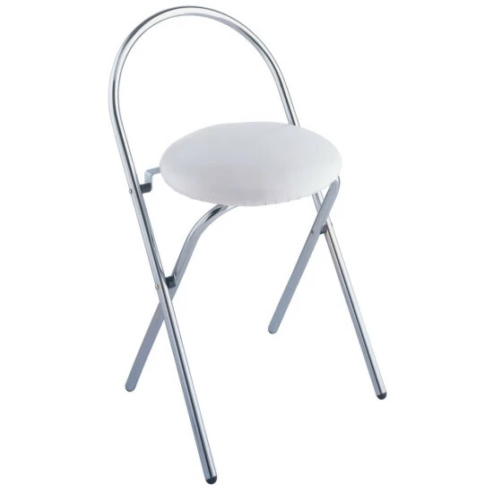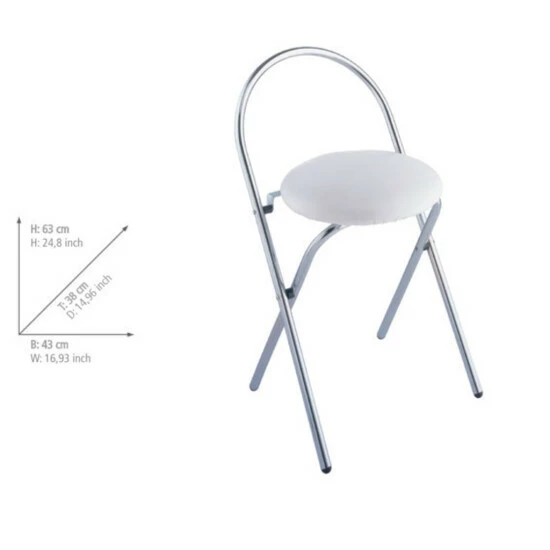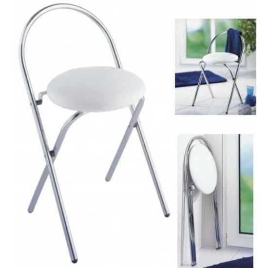 Der solide Hocker besteht aus einem stabilen Hochglanz-Chromgestell mit einer runden, gepolsterten Sitzfläche und Rückenlehne, die jederzeit zum Sitzen einlädt und leicht zu reinigen ist. Bei Nichtgebrauch kann der Badhocker platzsparend verstaut werden, da er einfach zusammenklappbar ist.