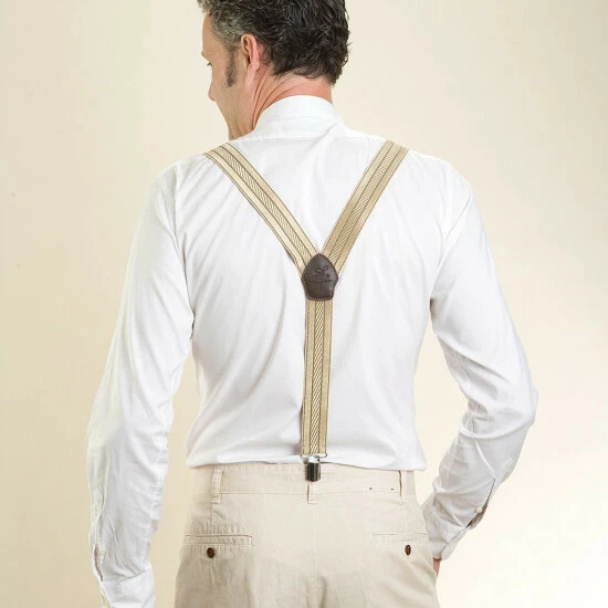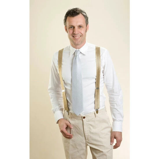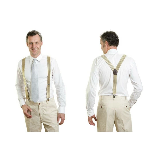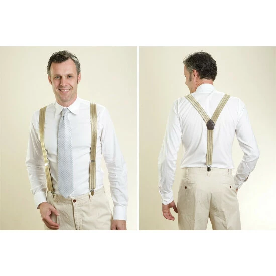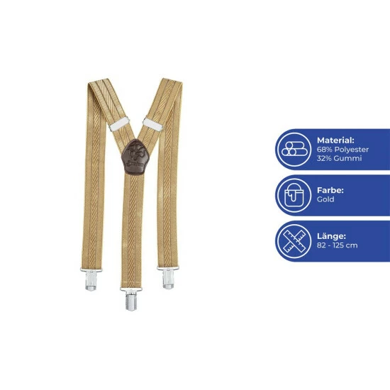 Die Hose rutscht und rutscht und ein Gürtel kann nicht befestigt werden? Das kann schnell lästig werden. Zur Verhinderung des lästigen Rutschens und ungewollter ‘Einblicke’ hier nun die klassische Variante: Die funktionalen goldenen Hosenträger in klassischer Y-Form halten die Hose an Ort und Stelle.