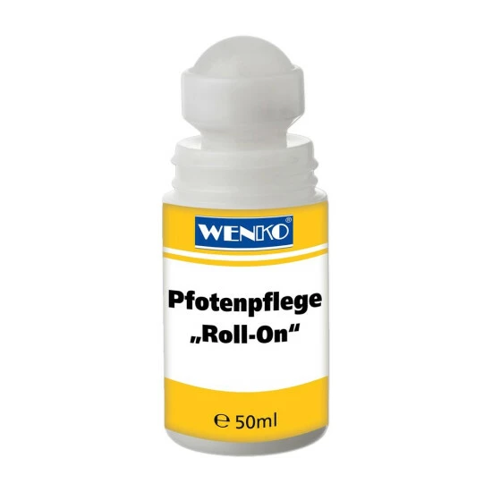 Der ideale Pflegeschutz für Pfoten zu jeder Jahreszeit – die Pfotenpflege ‘Roll-On’ von WENKO! Gerade im Winter können Straßen und Wege sehr unangenehm für Hundepfoten sein. Eis, Nässe, und Salz werden für den Vierbeiner zur Qual, wenn die Ballen spröde oder rissig sind. Die Pfoten brennen und können sich entzünden. Auch Rollsplitt zwischen den Zehen macht dem Tier zu schaffen. Dann macht der Spaziergang keinen Spaß mehr. Da hilft ein regelmäßiges Pflegeprogramm mit der Pfotensalbe ‘Roll-On’ von WENKO. Auch im Sommer können die sensiblen Tatzen durch Schmutz, Hitze und Staub gereizt werden und die Ballen werden trocken und rissig. Auch hier empfiehlt sich das ‘Roll-On’ von WENKO, damit Ihr Liebling jede Jahreszeit unbeschwert genießen kann. Ausgesuchte Inhaltsstoffe für Ihren Hund! Die Pflege verwöhnt Ihren Vierbeiner mit wertvollen Ölen aus Sesam und Avocado. Mit Vitamin E und dem Provitamin Panthenol wird für ausreichend Pflege und Feuchtigkeitsbalance gesorgt. Kamille und Granatapfel wirken beruhigend und entzündungshemmend. Die Pflege stabilisiert die Hautflora und hilft Ihrem Liebling bei der Regeneration. Die Elastizität des Ballens wird so erhalten. Dabei pflegt die Salbe ganz sanft die empfindliche Haut zwischen den Zehen. Der Roller ermöglicht eine praktische Anwendung: feinste Risse und Falten können gezielt und einfach gepflegt werden. Natürlich zieht die Pflege schnell ein und ist auch für Katzen mit Freigang geeignet.
