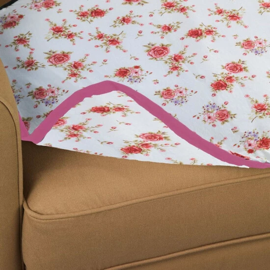 und mit Einfassband. Die Auflage ist waschbar bis 60°. Mit dem freundlichen Rosenmuster fällt die Unterlage als solche nicht so auf.