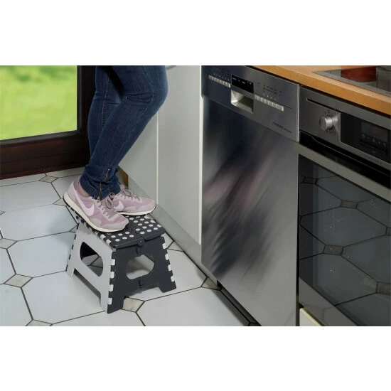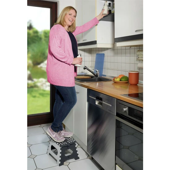 Klappbare und rutschfeste Fußbank SECURA, max. 150 kg, WENKO macht es leicht, nach Dingen oder Gegenständenzu greifen, die in hohen Regalen und mehr stehen. Es wird auch in einer Garage, einem Keller, einer Werkstatt oder beim Camping eingesetzt. Es kann von Kindern als Hilfe beim Zähneputzen usw. verwendet werden.