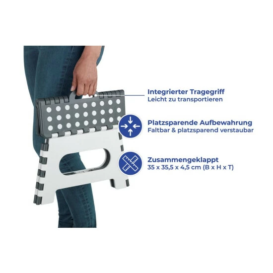 - Praktische Nutzung: Der stabile Hocker lässt sich bei Nichtgebrauch einfach zusammenklappen und platzsparend verstauen. Dabei ist er leicht zu transportieren dank integriertem Griff