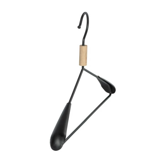 Auf einem Metallbügel hängen Sie bequem Hemden, Sweatshirts und Kleider. Die Enden des Kleiderbügels sind breit, dank dieser aufgehängten Kleidung verformt sich nicht in den Armen. Der Kleiderbügel wurde aus Metall in schwarzer Farbe hergestellt. Die Dekoration aus Buchenholz verleiht dem Kleiderbügel einen Loft-Charakter – er eignet sich hervorragend für den Flur, wo Sie ihn als funktionales Detail ausstellen können.