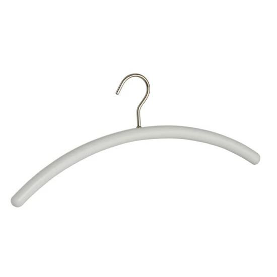 Der massive Holzbügel ist weiß lackiert.