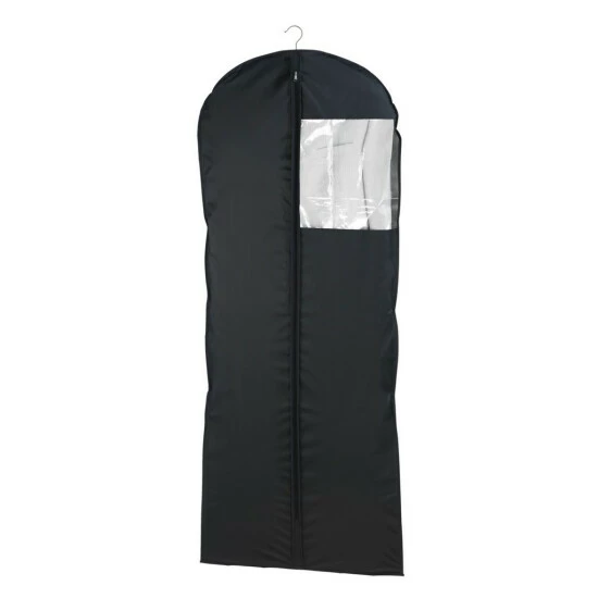 Er ist aus pflegeleichtem, abwaschbarem Kunststofffilm in Schwarz hergestellt und mit einem durchgehenden Reißverschluss versehen, durch den der Kleidersack bequem geöffnet und geschlossen werden kann. Ein transparentes Sichtfenster ermöglicht auch im geschlossenen Zustand einen Blick auf den Inhalt.