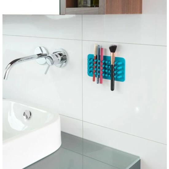 Der freche Kosmetik-Igel Ampio Petrol macht Ordnungsproblemen ein Ende. Der praktische Organizer für Bad und Gäste-WC ist aus hochwertigem, flexiblem Silikon gefertigt, was zahlreiche Vorteile mit sich bringt. Zwischen seinen „Stacheln“ hält der Kosmetik-Igel Kajal- und Augenbrauenstifte, Eyeliner, Augenkonturenstift, Lipliner sowie Puderpinsel dekorativ griffbereit. Auch Zahnbürsten finden in den Zwischenräumen einen ordentlichen Platz.