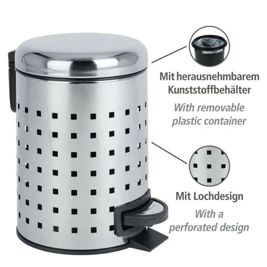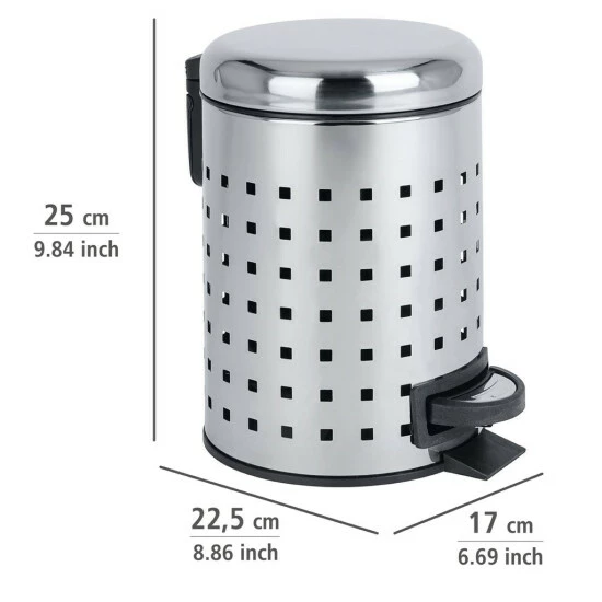 Der Tret-Abfallsammler Leman hat ein Fassungsvermögen von handlichen 3 Litern und ist ideal als Kosmetikeimer im Badezimmer einsetzbar, genau richtig für die kleinen Dinge, die entsorgt werden sollen.