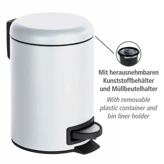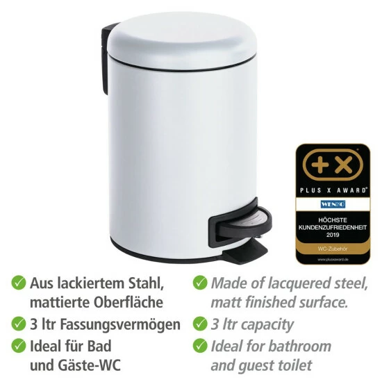 Ein dezenter, stabiler und vielseitig einsetzbarer Ordnungshelfer ist der Kosmetik-Treteimer Leman von WENKO. Egal ob in Bad, Küche oder Büro der weiße Eimer macht stets eine gute Figur.
