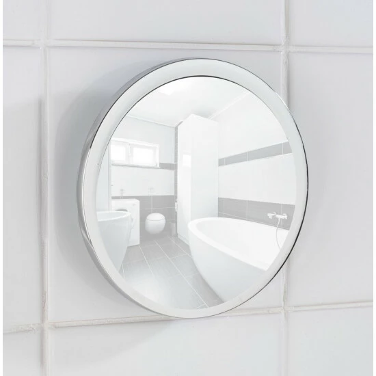 Zeitlos und gleichzeitig platzsparend (Ø 14,5 x 3,5 cm) ist der Kosmetik-Wandspiegel ein dezentes Bad-Accessoire. Durch seine 500% vergrößernde Spiegelfläche mit einem Ø 12,5 cm eignet er sich besonders für den kosmetischen Einsatz.