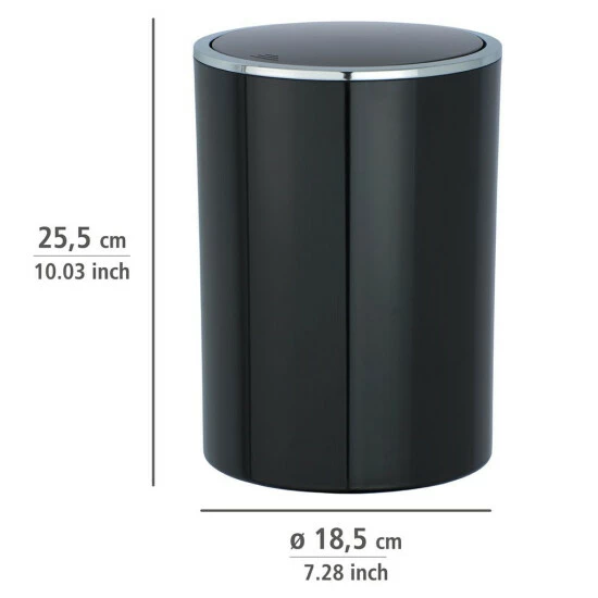 Um Bad und Gäste-WC geschmackvoll einzurichten wird der Schwingdeckeleimer im komfortablen 2er Set geliefert. Der praktische Kosmetikeimer Inca eignet sich mit einem Fassungsvermögen von 5 Litern optimal für die Entsorgung kleinerer Bad-Abfälle. Das stilvolle Design verleiht jedem Bad einen besonderen Charme und lädt zum Wohlfühlen ein. Die verchromten Details lassen den Schwingdeckeleimer im Glanz erstrahlen. Der Kosmetikeimer kann mit Abmessungen von (B/T x H): Ø 18,5 x 25,5 cm beliebig an jedem Ort platziert werden und ist jederzeit griffbereit.