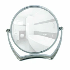 Ein wunderbares Zusammenspiel aus schlichter Eleganz und Funktionalität verbindet der Kosmetikspiegel Noale in Chrom. Der Spiegel bietet neben der 100% Spiegelfläche eine 5-fach Vergrößerung für den kosmetischen Einsatz. Besonders eignet sich diese Vergrößerung für die tägliche Rasur oder das tägliche Make up. Die Position kann individuell eingestellt werden, da der Kosmetikspiegel Noale neigbar ist. Die große Spiegelfläche mit einem Durchmesser 15 cm ist aus hochglänzendem Chrom gefertigt und somit sehr stabil. Der dekorative Fuß sorgt für den optimalen Stand. Wenn man ihn mal nicht , kann der Kosmetikspiegel Noale zusammengeklappt, perfekt verstaut werden.
