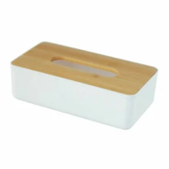 - Zwei Farben zur Auswahl. Die ROTELLO Taschentuchbox ist in zwei Farben erhältlich: Weiß und Schwarz. Jede dieser Farben passt sehr gut zum Hellbraun des Bambusdeckels.