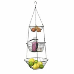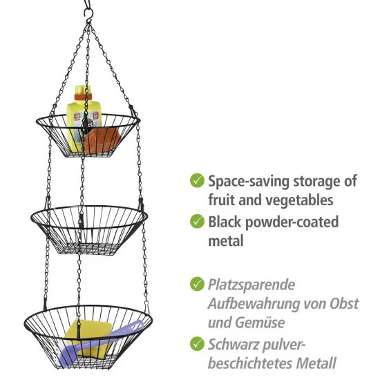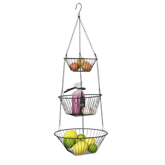 Diese schöne Küchenampel ist eine nützlicher Helfer in jedem Haushalt. Die 3 Ablagekörbe, die durch Hängeketten verbunden sind, bieten viel Platz für Obst, Gemüse oder Küchenutensilien.