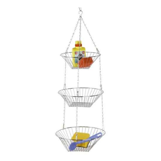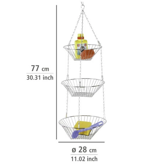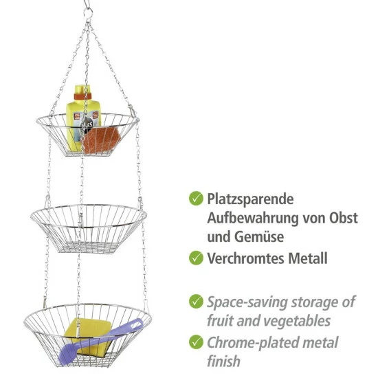 Diese schöne Küchenampel ist eine nützlicher Helfer in jedem Haushalt. Die 3 Ablagekörbe, die durch Hängeketten verbunden sind, bieten viel Platz für Obst, Gemüse oder Küchenutensilien.