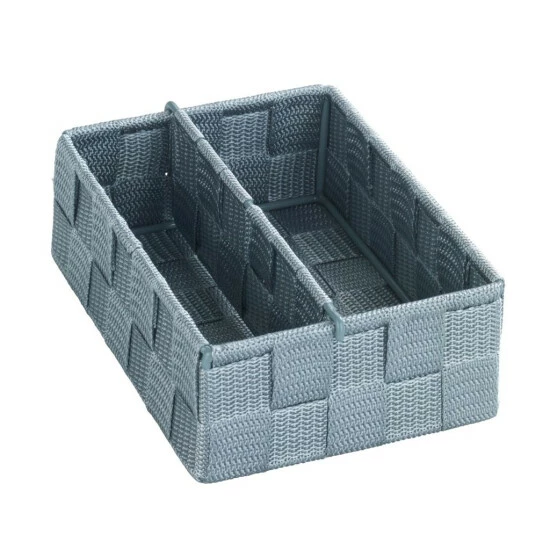 Der praktische Küchen-Organizer Adria S macht Ordnungsproblemen ein Ende. Der clevere Helfer aus hochwertigem, grauem Kunststoff-Geflecht bietet in zwei Abteilungen genügend Platz für Back- und Kochzutaten.