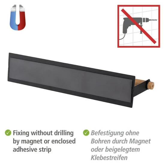 Mit dem Küchenrollenhalter schaffen Sie mehr Ordnung auf Ihrer Küchenarbeitsfläche. Das Küchenpapier steht nicht im Weg, ist gleichzeitig aber jederzeit leicht zu erreichen und einfach abzureißen. Mit seinen Maßen von (B x H x T): 30 x 6 x 8 cm findet der magnetische Halter in elegantem Schwarz fast überall einen Platz. Ergänzen lässt sich das schicke Küchen-Accessoire mit dem Gewürzregal Magna, das sich ebenfalls ganz leicht und ohne Bohren anbringen lässt. Zudem bietet die Serie Magna noch ein Küchenregal, das gleich mehrere Funktionen vereint: Es verfügt über einen Rollenhalter, Aufhängungsmöglichkeiten für Küchenutensilien und eine Abstellfläche für Gewürze oder Öle. Für heller eingerichtete Küchen gibt es den Küchenrollenhalter Magna von WENKO auch in klassischem Weiß mit natürlichem Bambus-Detail.