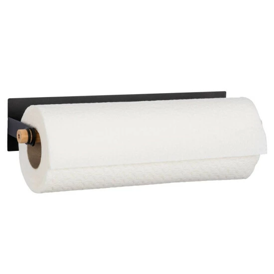 - Bambus und Metall Das Design des Küchentuchhalters besteht aus strapazierfähigem Metall in Schwarz. Der Papierrollbügel besteht aus Bambusholz.