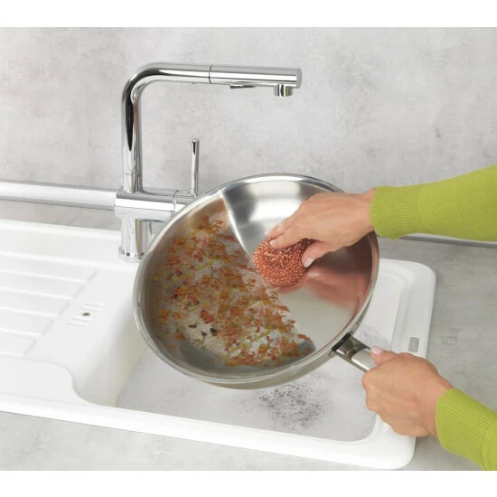 Töpfe und Pfannen werden blitzblank sauber, ohne zu verkratzen: Diese Kupferputzlinge sind universell einsetzbar und die schonende, rostfreie Alternative zum Stahl-Kratzschwamm. So erfolgt die Reinigung gründlich und zeitgleich oberflächenschonend.