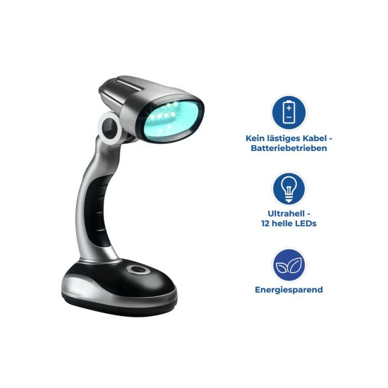 Dank der 12 LEDs leuchtet die Lampe ultrahell und energiesparend. Große Flexibilität wird durch einen ergonomischen Griff und die handliche Größe gegeben. Die Lampe liegt so immer gut und sicher in der Hand.