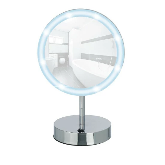 Der runde Spiegel verfügt dafür über eine effiziente LED-Technik, welche einen hochwertigen Lichteffekt erzeugt und per Knopfdruck an-und ausgeschaltet werden kann. Dank der LED-Technik ist eine extrem hohe Lebensdauer der Beleuchtungsfunktion gegeben. Der Spiegel verfügt über 5-fache Vergrößerung auf der Spiegelfläche.