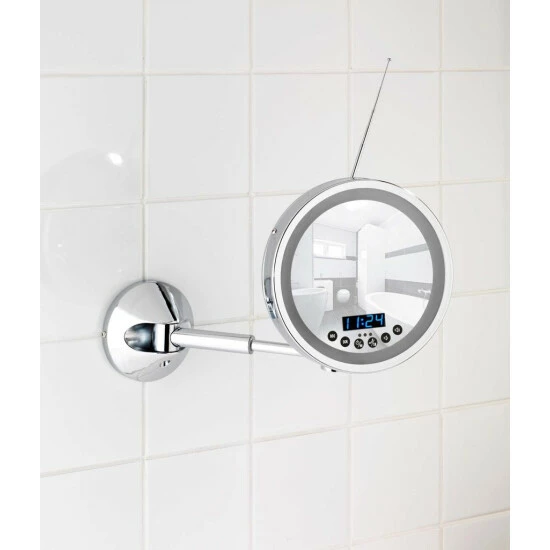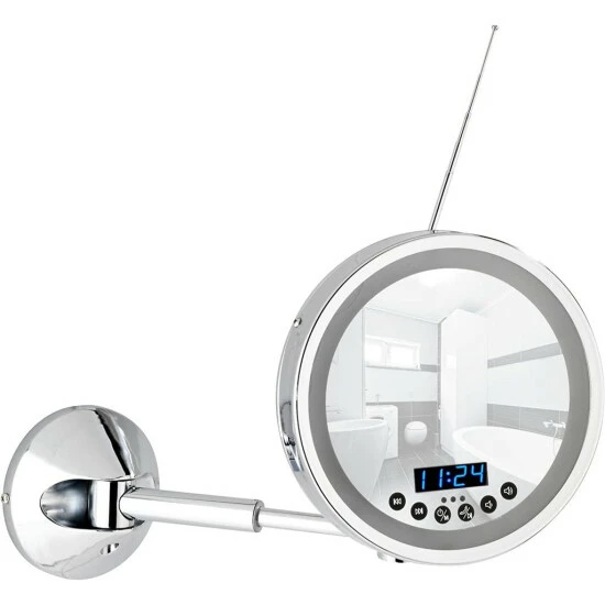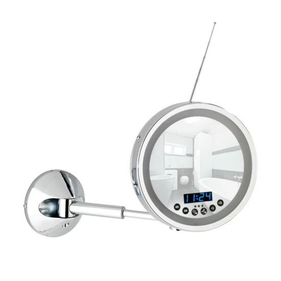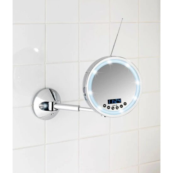 LED-Beleuchtung mit BewegungssensorEine optische drei-Fachvergrößerung sowie eine LED-Beleuchtung sorgen dafür, dass bei guten Lichtverhältnissen auch kleine Details gut sichtbar werden. Die LEDs arbeiten energieeffizient und sind extrem langlebig. Ein integrierter Bewegungsmelder erspart die umständliche Suche nach dem Lichtschalter und schaltet die Beleuchtung immer dann an und aus, wenn es nötigt ist. | Integriertes Multimedia-CenterNeben einer digitalen Uhr, einem Radio mit Senderspeicher und einer ausziehbaren Antenne verfügt der Spiegel auch über Bluetooth und einem USB-Port. So lassen sich problemlos externe Geräte verbinden und z.B. Musik abspielen. Sogar das Telefonieren vom heimischen Badezimmer aus ist durch ein eingebautes Mikrofon möglich. | Einfache BedienungMit den integrierten, cleveren Touch-Feldern am unteren Rand des Spiegels ist die Steuerung der einzelnen Funktionen intuitiv möglich, sodass alle Funktionen ganz bequem und leicht mit einfachem Fingerdruck zu bedienen sind. |