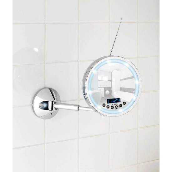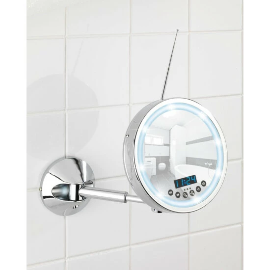 Der LED Kosmetik-Wandspiegel Imperial von WENKO mit sehr guter Leuchtkraft durch LEDs & 3-fach Vergrößerung ist gleichzeitig ein Multimedia-Center.