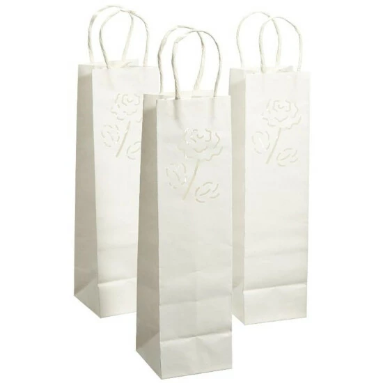 Diese trendigen Tüten können sowohl als edel-praktische Geschenkverpackung für Wein- und Sektflaschen als auch mit Teelicht bestückt als dekoratives Lichtelement verwendet werden. Die Weintüten/Lichttüten sind aus hochwertigem und schwer-entflammbaren Spezialpapier gefertigt und haben ein gestanztes Rosenmotiv. Lassen Sie sich von den vielfältigen Einsatzmöglichkeiten dieser Serie begeistern und machen Sie bereits bei der Geschenkübergabe einen unvergesslichen Eindruck. Im Lieferumfang sind drei Tüten enthalten.