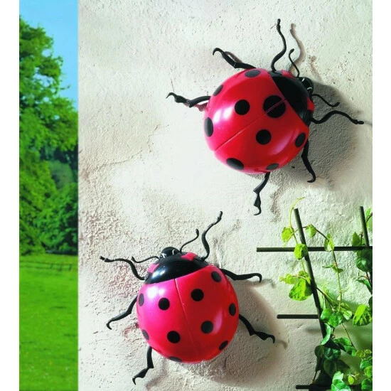 Gartenzeit ist Marienkäferzeit. Ob Hausgang, Terrassenwand oder Balkon, die beiden Glücksbringer werden die Blicke auf sich ziehen. So kehren Frühling und Sommer nicht nur in Ihren Garten ein, einfach überall ein niedlicher Frühjahrsbote. Einfache Wandmontage. Aus witterungsbeständigem Material.