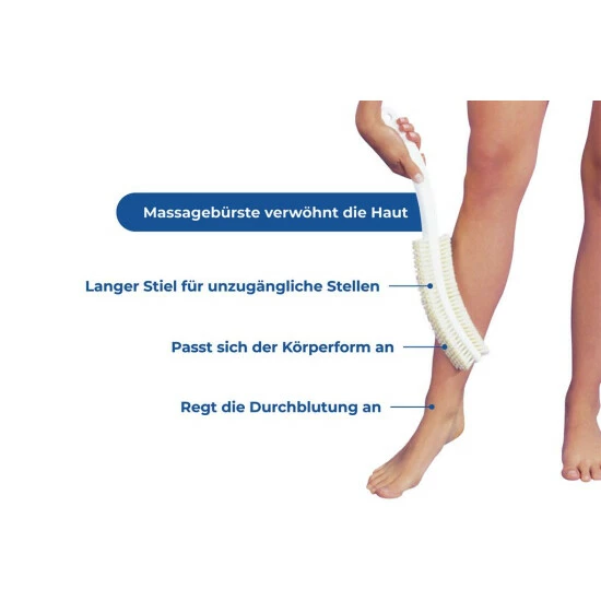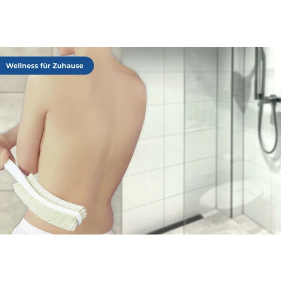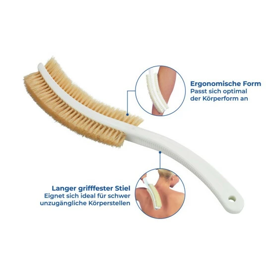 Durch die ergonomische Form passt sie sich optimal jeder Körperform an. Mit ihren langen Stielgriff sind auch schwer zugängliche Körperpartien wie z.B. der Rücken einfach zu erreichen.