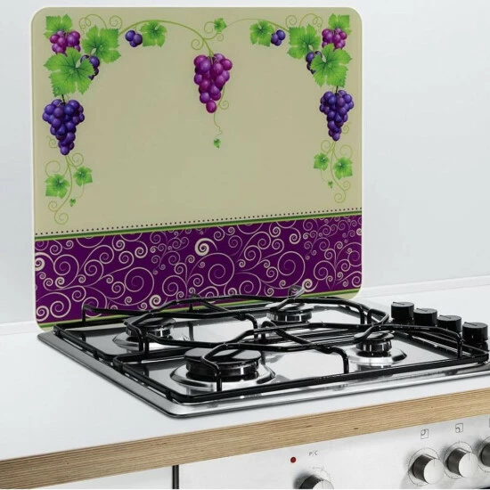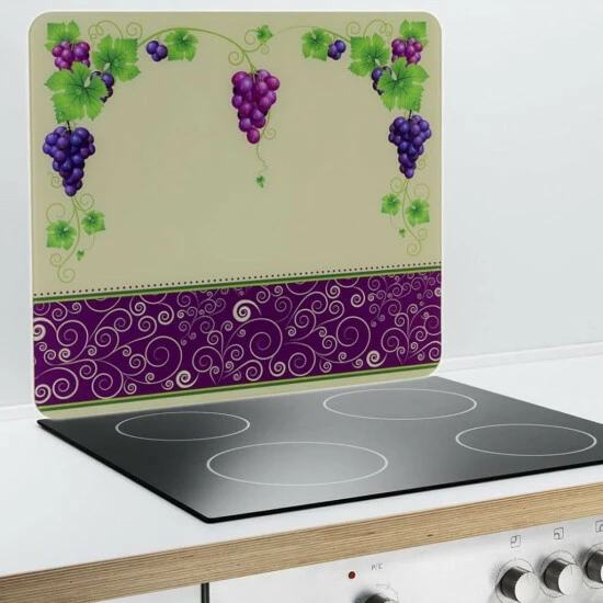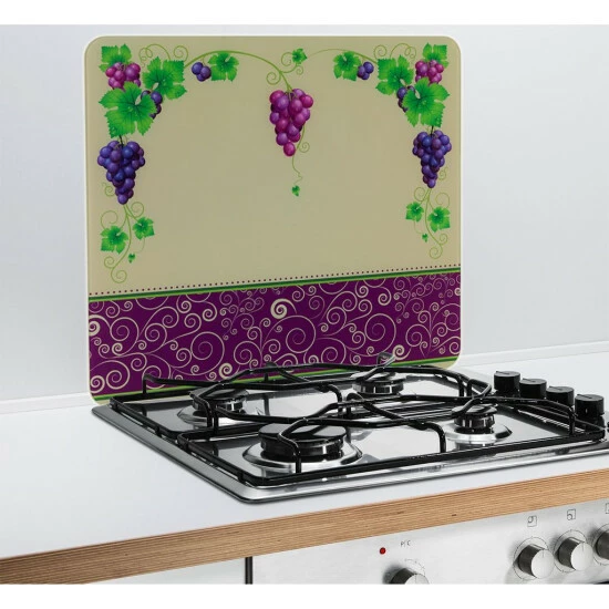 Die Multi-Platte Traube bringt eine dekorative Atmosphäre mitten in die Küche. Die Multi-Platte kann dazu verschieden eingesetzt werden: Sei es als Arbeitsplatte oder Wandblende, als Riesen-Schneidbrett oder mobile Arbeitsfläche (56 x 50 cm). Das große Glasbrett sorgt für gute Laune.