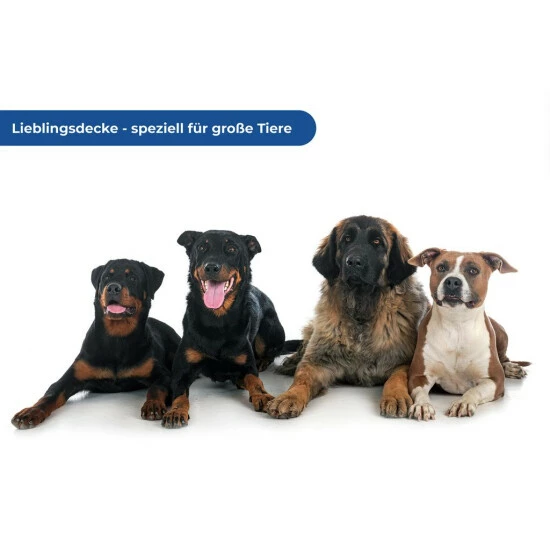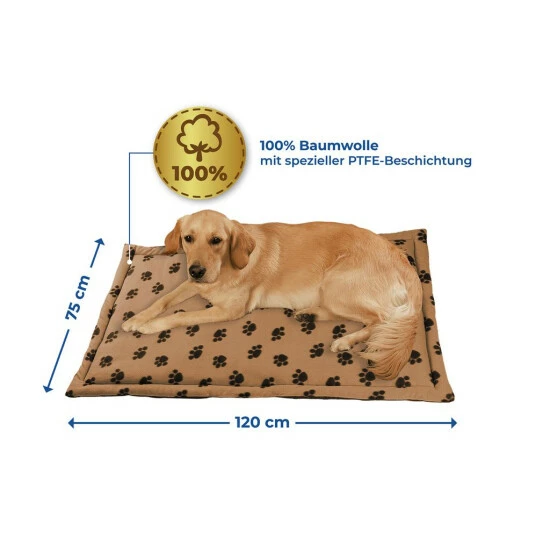 Angenehmes Liegevergnügen für große Haustiere – auf dieser Multi-Tierdecke mit Antihaft-Effekt kann sich der Vierbeiner bequem ausruhen. Die große Baumwolldecke ist weich gepolstert und reinigt sie sich fast von allein. Aufgrund der speziellen PTFE-Beschichtung haften weder Tierhaare noch Schmutz an der Decke. Ein kurzes Ausschütteln genügt und schon kann sich der Hund oder die Katze wieder gemütlich hinlegen.