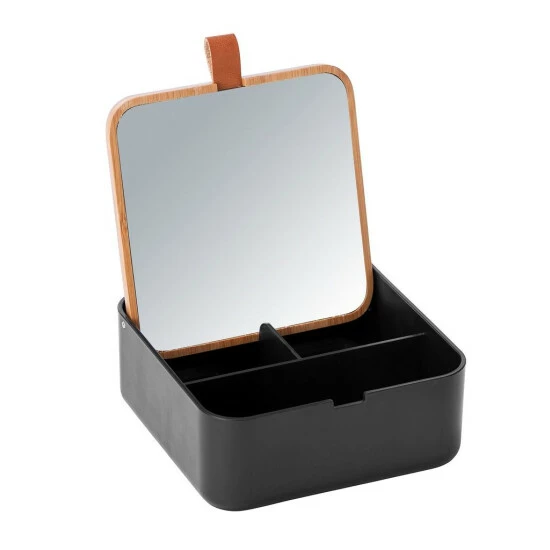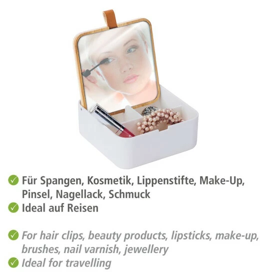 Wenko Bovisa organisator Ein stilvoller BovisaOrganisator von Wenko. Geeignet für Schmuck- und Make-up-Produkte. Der Organisator hat einen Deckel mit Spiegel. Spezifikationen: Farbe: weiß, natürlich Material: Kunststoff, Bambus Abmessungen: 14 x 5,5 x 14 cm