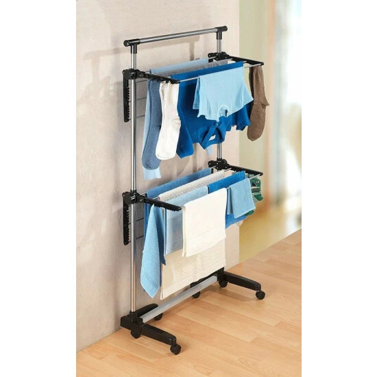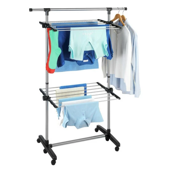 Der hochwertige Wäschetrockner ist aus stabilem, rostfreiem Edelstahl gefertigt und hat eine Tragkraft von ca. 15 kg.