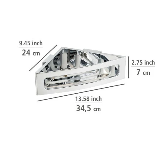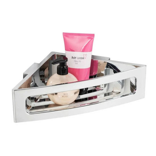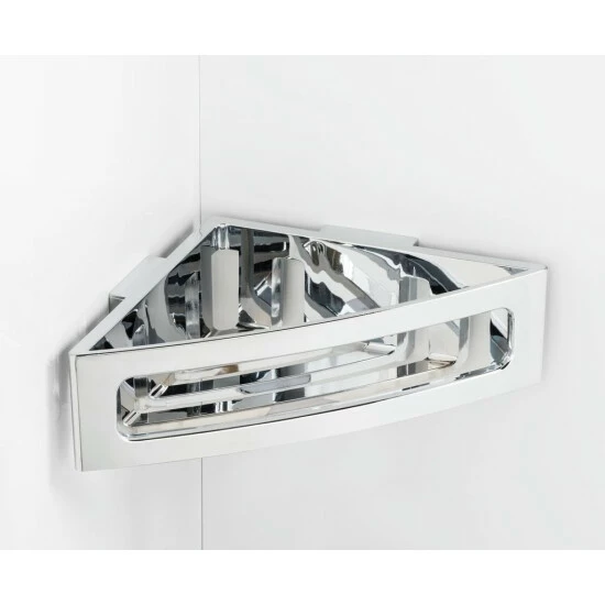 Die Power-Loc®-Eckablage Bralia ist aus hochwertigem Kunststoff in glänzendem Chrom gefertigt und verleiht Ihrem Badezimmer durch das ausgefallene Design glamourösen Charme. Die ausgefallene Optik und die extravaganten Konturen sehen nicht nur schick aus, sondern bringen auch Funktionalität in jedes Bad.