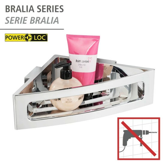 Auf der platzsparenden Power-Loc® Eckablage Bralia finden Bad-Accessoires und Pflegeutensilien wie Duschgels, Shampoos oder Waschlotionen einen attraktiven Stellplatz. Die Ablage ist besonders zum Anbringen in Duschecken geeignet. Alle Pflegeprodukte sind stets griffbereit aufbewahrt.