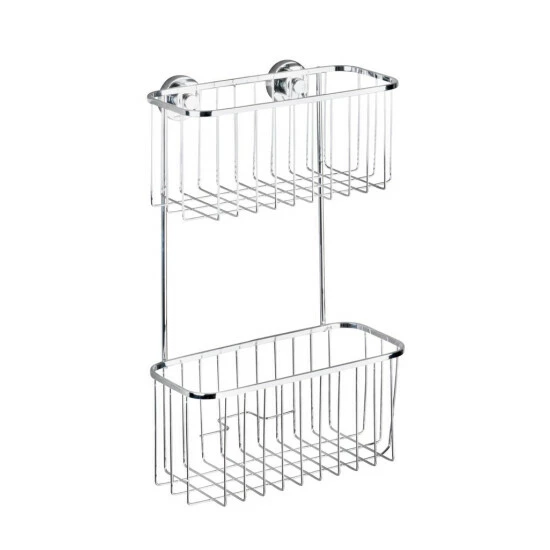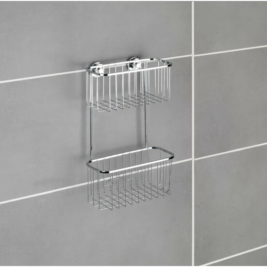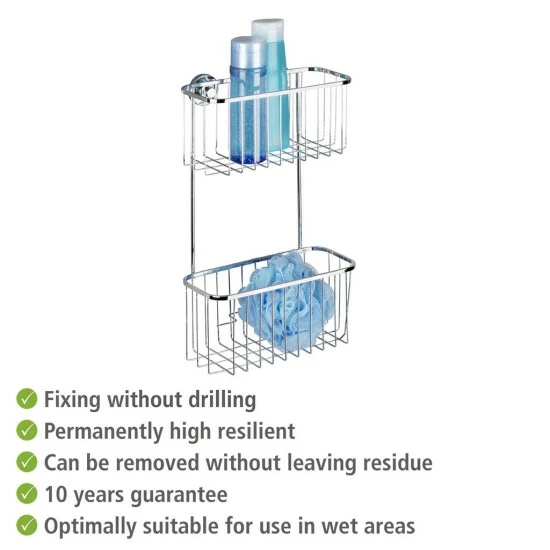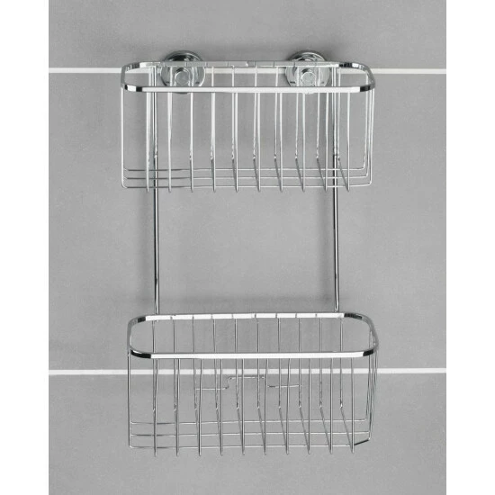 Das glänzende Wandregal Bovino bietet auf zwei Etagen viel Platz in Dusche oder Badewanne für Duschgel, Badeschaum, Shampoos, etc. und hält diese stets griffbereit. Durch die hohe Form der beiden Ablagen stehen alle Utensilien immer sicher. Das macht den praktischen Ablagekorb zu einem nützlichen Helfer im Bad.