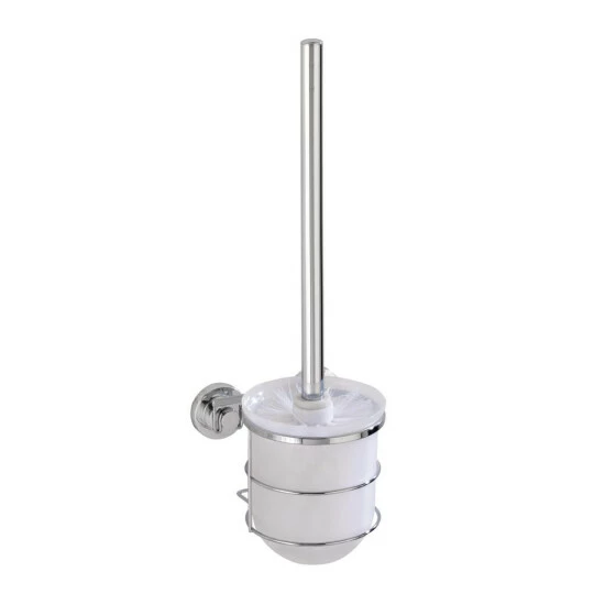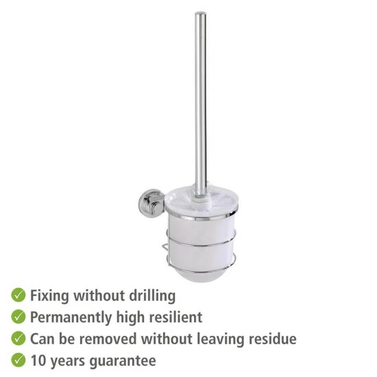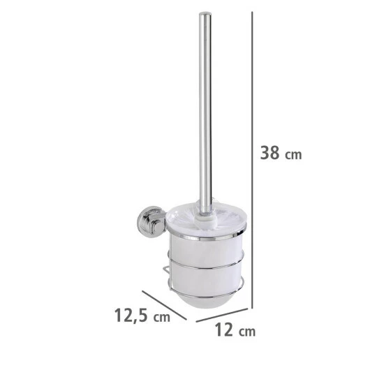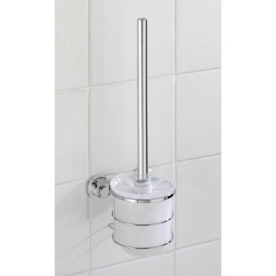 Die elegante Wand WC-Garnitur fügt sich problemlos und platzsparend im Badezimmer ein. Sie hält die WC-Bürste stets griffbereit. Der abnehmbare Behälter aus Kunststoff hat eine offene Form. Im Lieferumfang ist die WC-Bürste mit weißem Bürstenkopf und Edelstahlstiel enthalten. Das macht die praktische Garnitur zu einem nützlichen Helfer im Bad oder Gäste-WC.