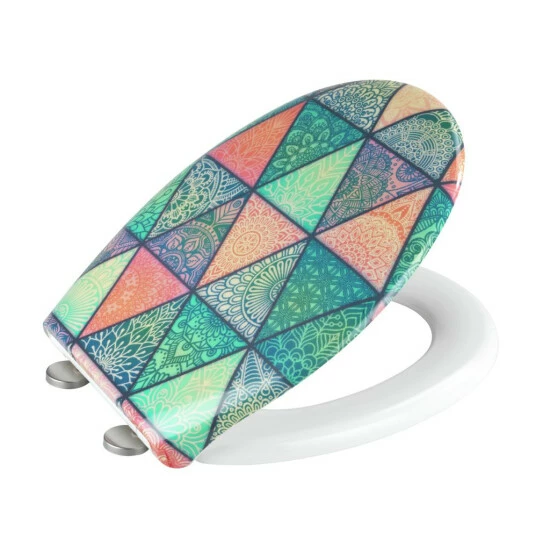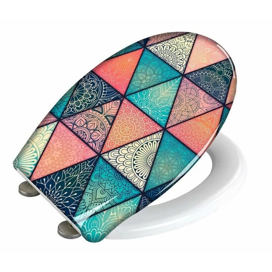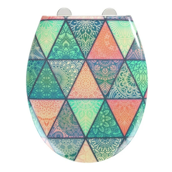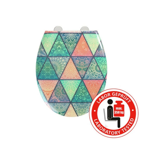 Der hochwertig verarbeitete WC-Sitz Geometry aus antibakteriellem Duroplast hat eine klassisch ovale Deckelform. Das ausgefallene, geometrische Motiv hat eine starke ästhetische Anziehungskraft und setzt durch das Zusammenspiel von Farben und Formen starke Akzente in jedem Badezimmer und Gäste-WC. Neben dem angenehmen Sitzkomfort ist der Toilettensitz auch mit praktischen Zusatzfunktionen ausgestattet. Das antibakterielle Duroplast sorgt für mehr Hygiene im Bad.